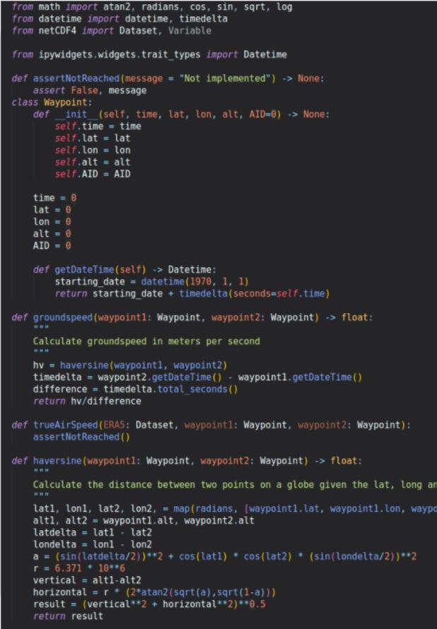 Implementing the Schmidt-Appleman criterion turned out to be the most difficult part of the implementation. This means we were unfortunately unable to implement this in the given timeframe. The Schmidt-Appleman criterion requires knowledge of at least Water vapor partial pressure and temperature at the site of potential formation. This is data we don’t have access to nor do we have time or processing power enough to simulate it. As such we can only leave you with recommendations for continued research in this field.